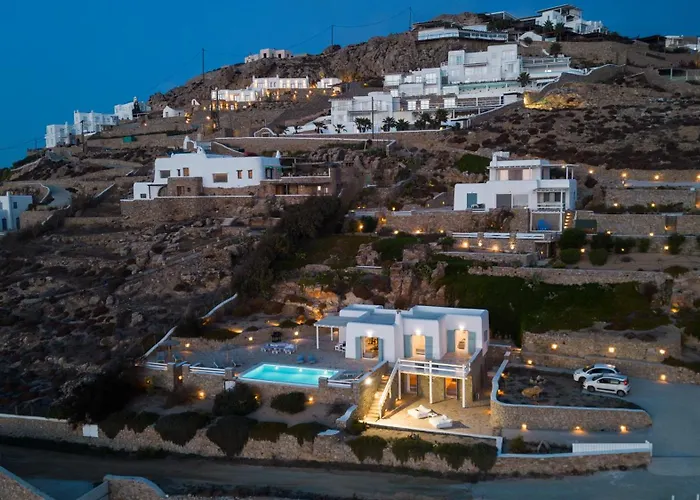 La Villa Crystal By Mykonos Mood offre agli ospiti un bollitore elettrico, un frigo e una vetreria in una cucina completamente attrezzata. L'aeroporto di Mykonos è raggiungibile in 15 minuti di auto dalla villa. Dotata di una piscina privata, questa struttura dispone anche di biciclette e auto a noleggio.